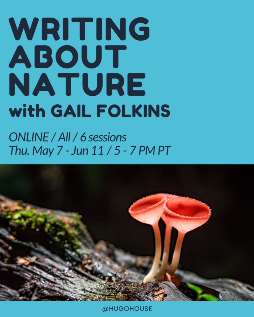 Writing About Nature at Hugo House, Thursdays, 5-7 pm, starts May 7 (six sessions). Online. Learn more.